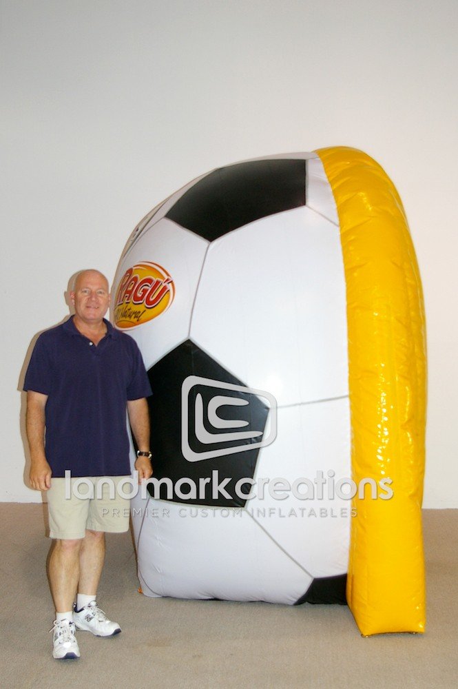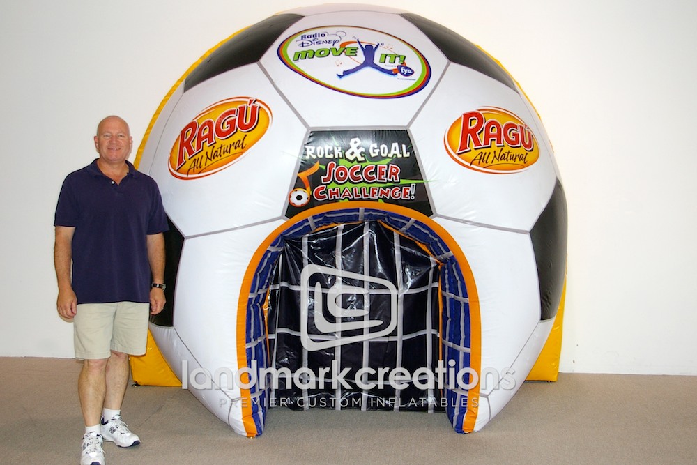 Ragu pasta sauce encouraged kids to participate in a soccer shoot out with this inflatable soccer ball goal while also teaching them about healthy eating choices.
