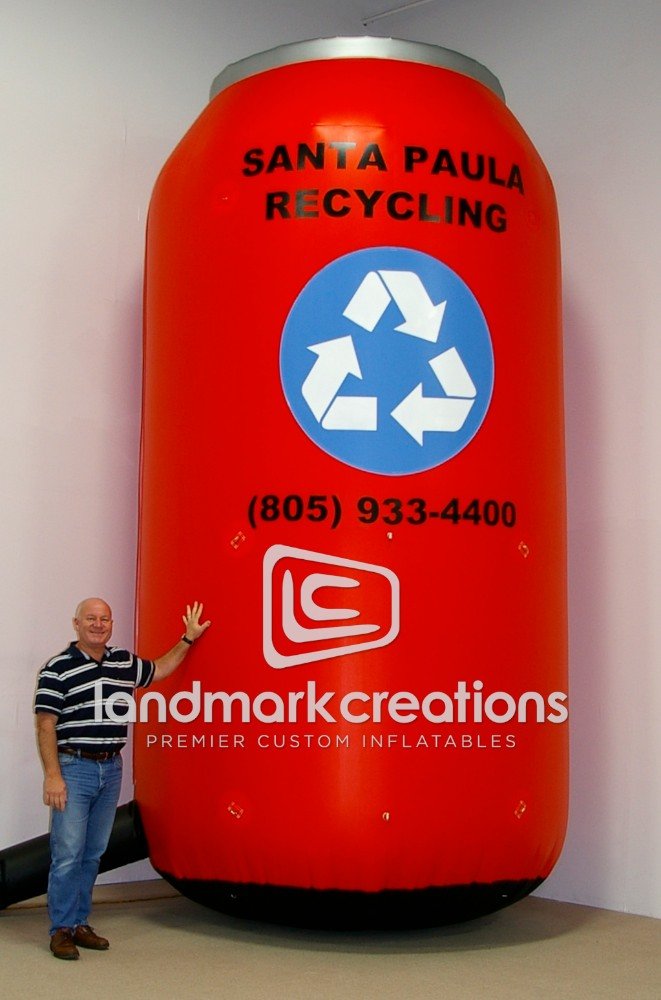 This 15-foot,inflatable pop can replica, with a giant recycling symbol printed on its side, reminds Santa Paula community members to recycle and prevent the waste of potentially useful materials.