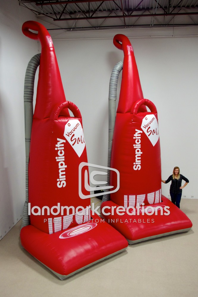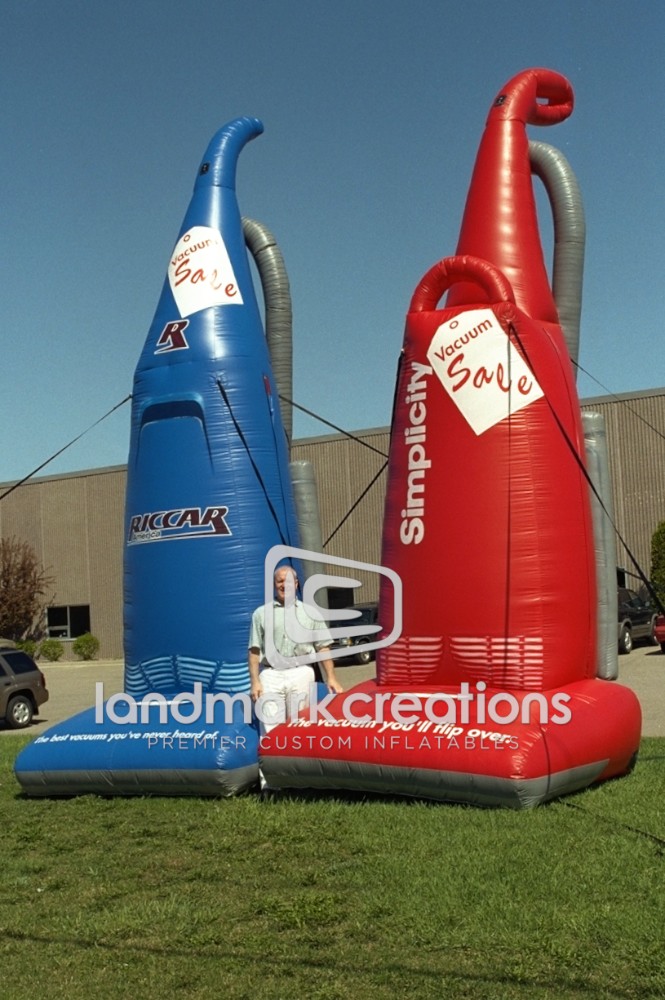 Marketing directors who need to promote new product lines in a huge way turn to giant inflatable product replicas, like these giant vacuums, to attract attention and increase foot traffic at retail locations.
