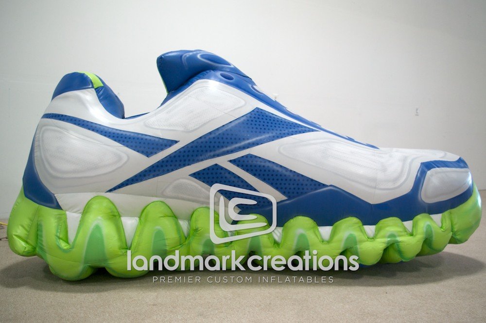 Need a creative way to launch a new sporting goods item? Reebok revealed their updated Zig shoe line at marketing events in a big way with these giant, lime green and blue inflatable replicas.