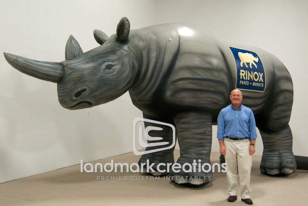 This massive inflatable rhinoceros for concrete product manufacturer, Rinox, Inc., is a multi-purpose marketing tool. From trade shows to sports tours, Rocco the Rhino promotes the Rinox brand wherever he goes. But unlike real rhinos this inflatable is lightweight and easy to manage.