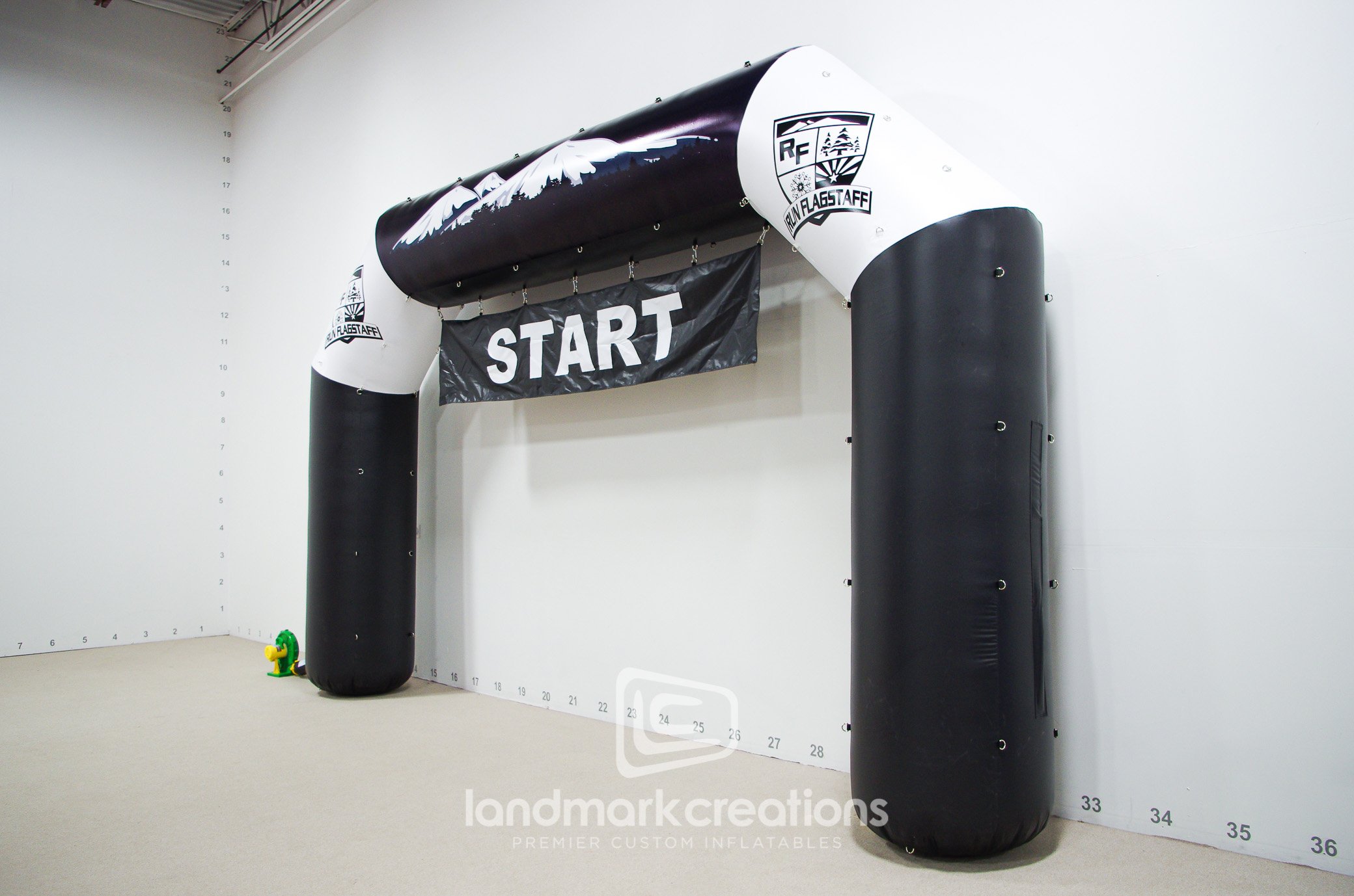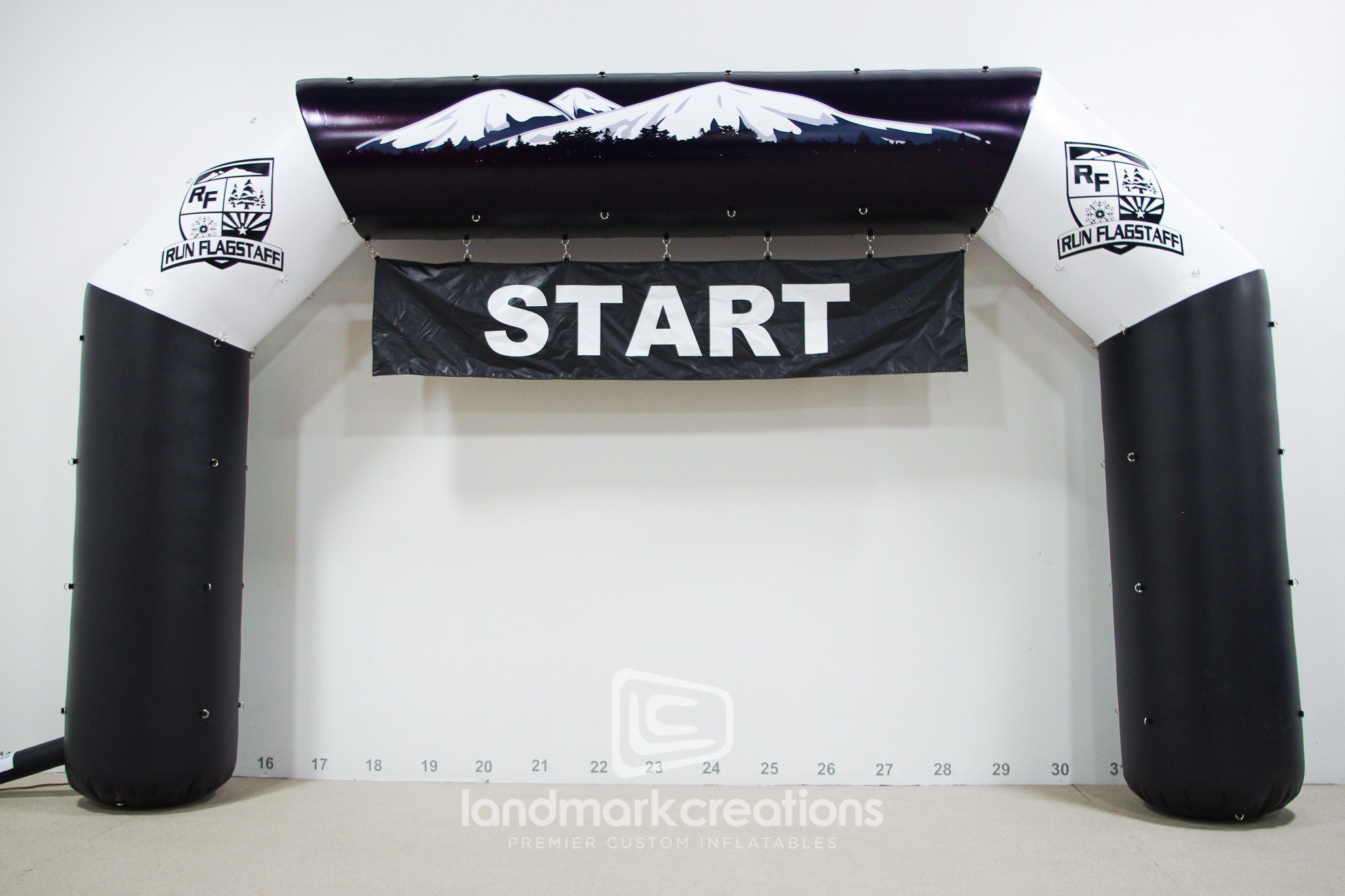 Run Flagstaff, a running company in Arizona, uses this inflatable start and finish line arch for sporting events and races. The arch’s sturdy D-ring fastenings allow the banner to be changed out for future events.