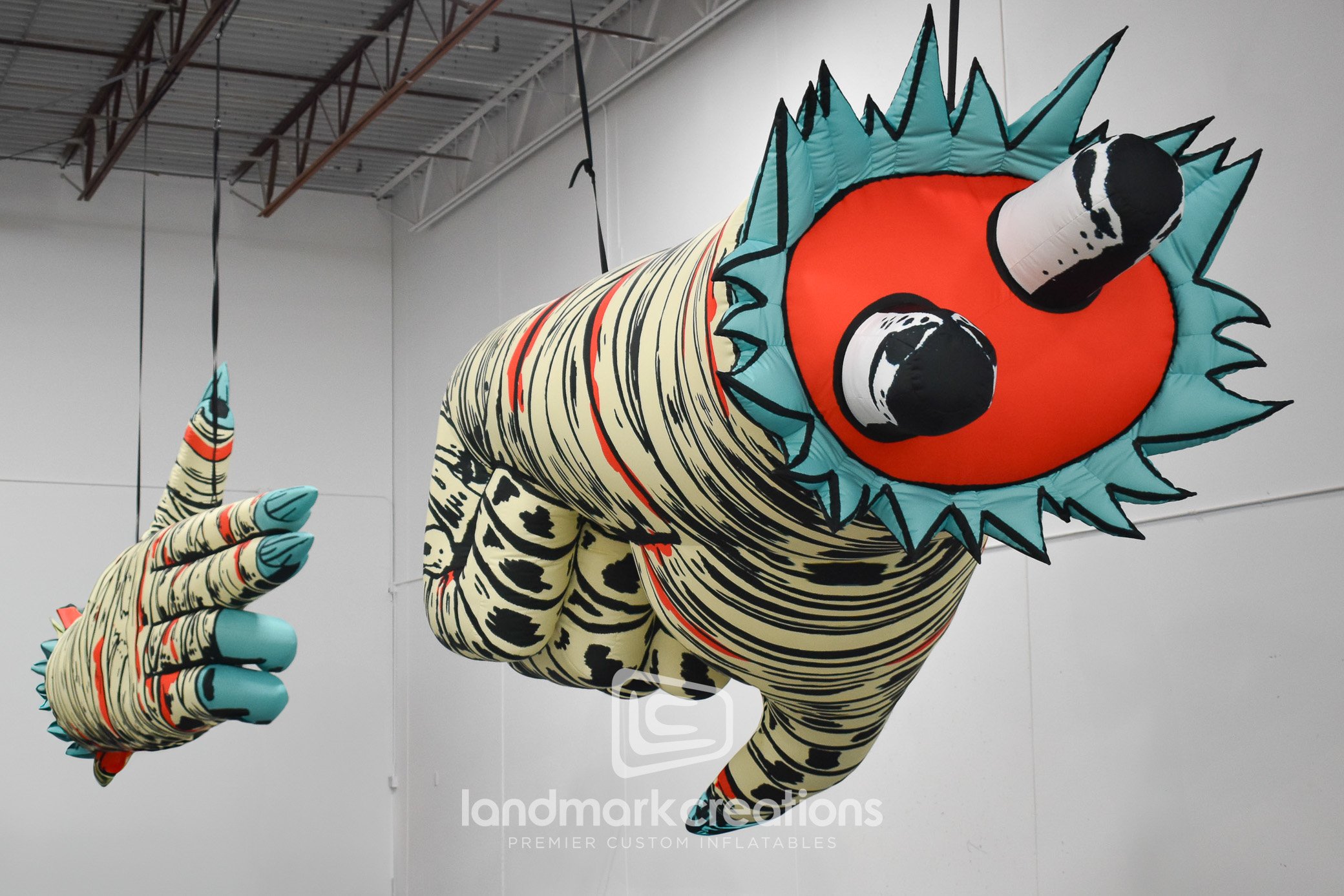 Inflatable Run the Jewels "hand sign" one hand in the shape of a gun and the other a fist symbolizing a stick up, run the jewels. The "hand sign" inflatable was created to be displayed onstage during RTJ's 10th anniversary tour that kicked off in the Fall of 2023. The "hand sign" is iconic to RTJ.