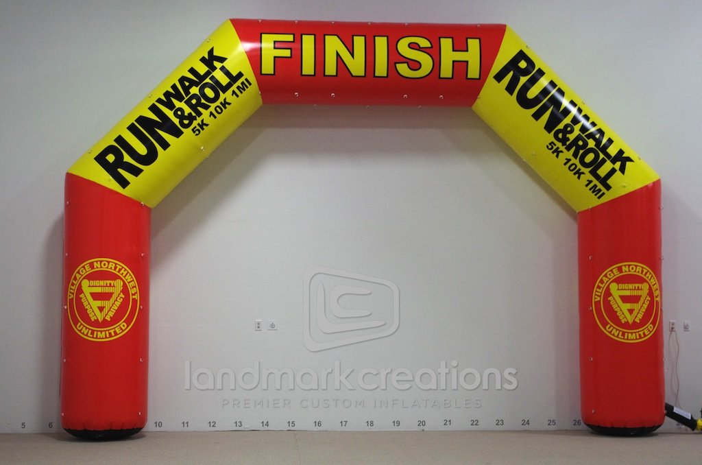 Village Northwest Unlimited knew the value of using an inflatable arch in their cause marketing for its portability, flexibility and recognition. The bright red and yellow also helped direct runners to the start/finish line.