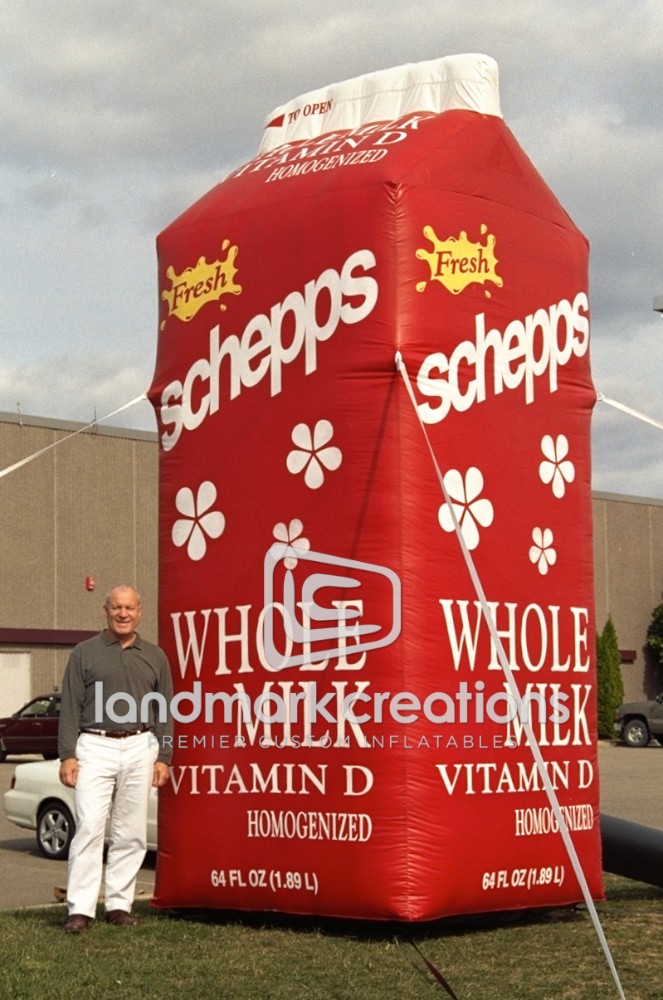 Schepp's Milk Carton inflatable replica creates a bold visual statement at events and trade shows. Its realistic details make it a memorable centerpiece for marketing campaigns.