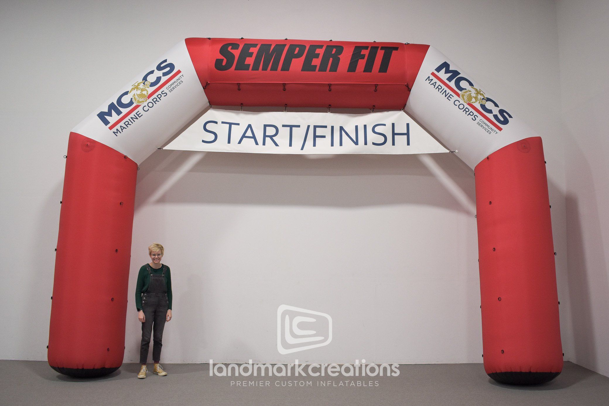 The Marine Corps Community Services (MCCS) organized the 8th Annual 24 at 29 Endurance Run and Relay Race "Semper Fit," a challenging and grueling 24-hour endurance event held at the Marine Corps Base in Twentynine Palms, California. As a way to enhance the race experience and create a memorable finish line for the runners, MCCS decided to use an inflatable custom arch as the start/finish line. The inflatable arch served as a visible marker and its vibrant red & white coloring added an element of excitement and festivity to the event. The arch's branding elements also help create a sense of unity and camaraderie among the runners and spectators. Inflatable arches are easy to set up and take down, making them a practical choice for any race event that requires quick and efficient set-up and break-down times.