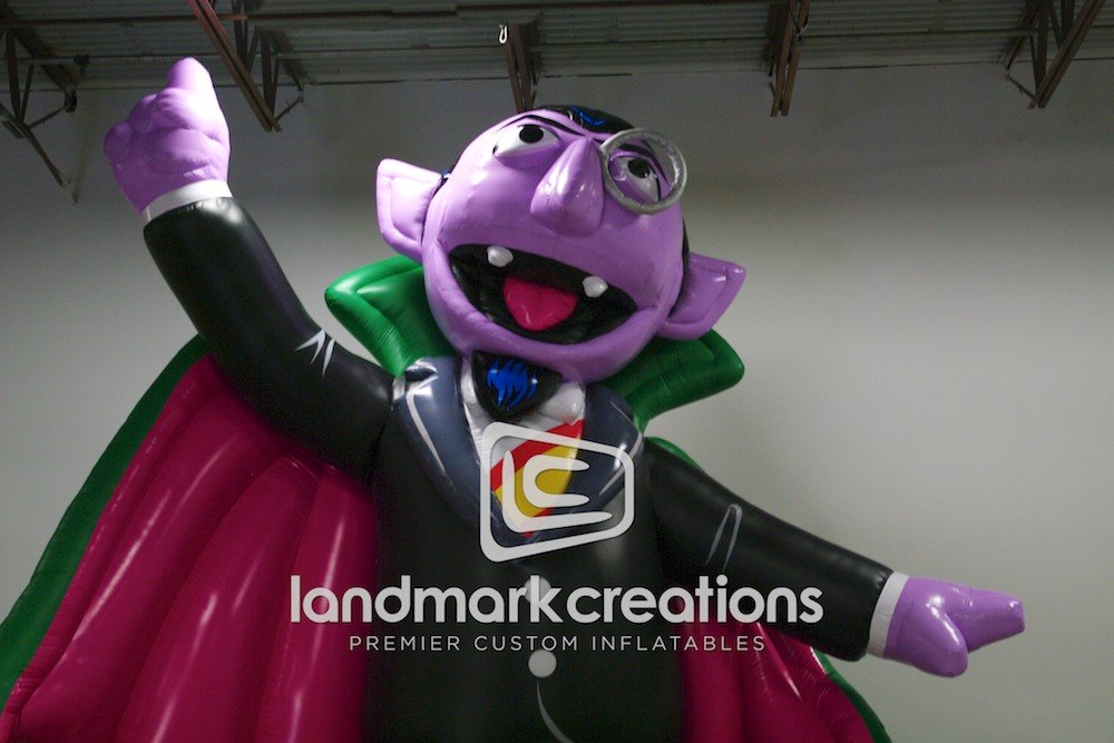 This 20-foot inflatable replica of the beloved Sesame Street Character The Count is displayed at Sesame Place, a family theme park in Pennsylvania, to celebrate Count's Halloween Spooktacular!