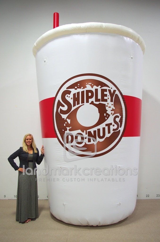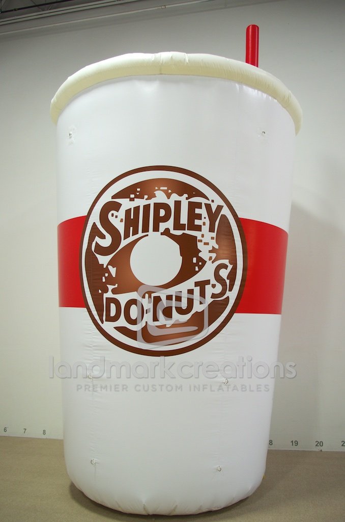 This massive inflatable Shipley Do-Nuts cup, made for Adkins Development Corporation, was designed to advertise promotions and special offers at Shipley Do-Nuts restaurant locations.