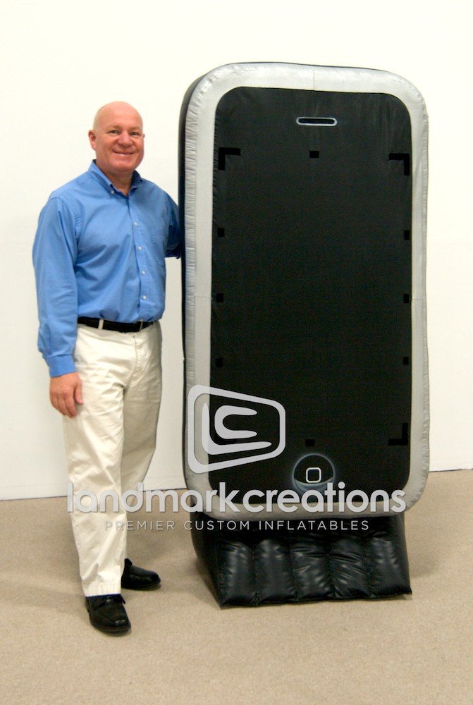 Commercial real estate solutions company, North Shore Systems, inflates their iPhone replica at trade shows to promote hi-tech solutions for lenders and real-estate brokers.