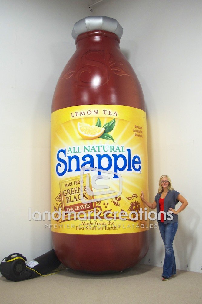 Want to create BIG awareness of your beverage products at events! Try using a giant custom inflatable replica like this Snapple Lemon Tea bottle! Custom inflatables are a refreshing way to increase brand recognition.