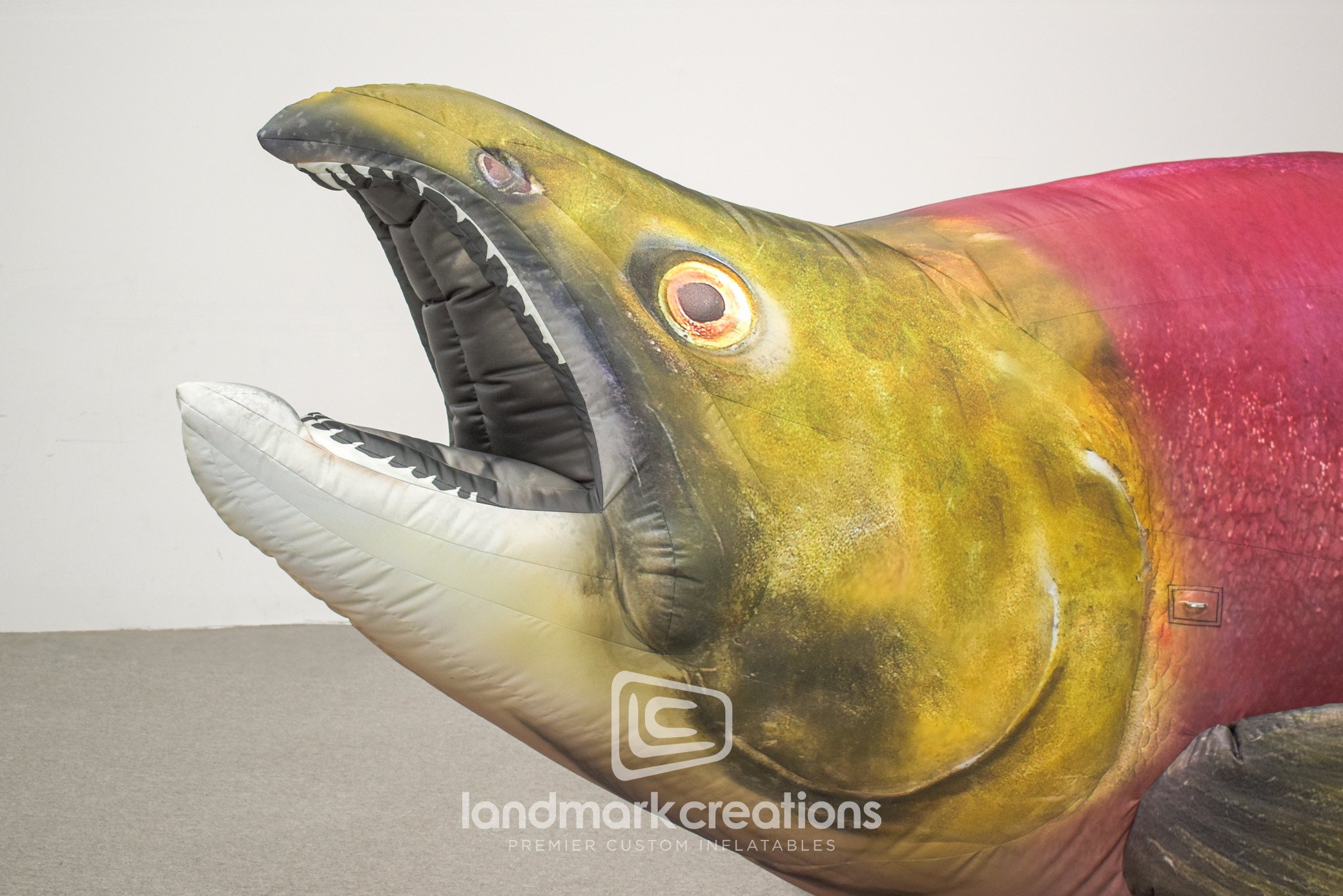 This custom inflatable Sockeye Salmon, created for Fisheries and Oceans Canada, stands at 7.5 feet tall and stretches 20 feet in length. Perfect for community events, this life-size replica captures the intricate details of the vibrant Sockeye Salmon, offering an engaging visual display. Ideal for environmental awareness and educational campaigns, this inflatable adds a striking element to outdoor events and workshops, drawing attention while creating memorable photo opportunities.