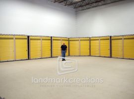 Advertise what your business has to offer with a custom inflatable replica! Storage company GRDM Management draws attention to their storage facilities with an inflatable storage unit replica display. A giant finger sits atop the display to point traffic in the right direction.