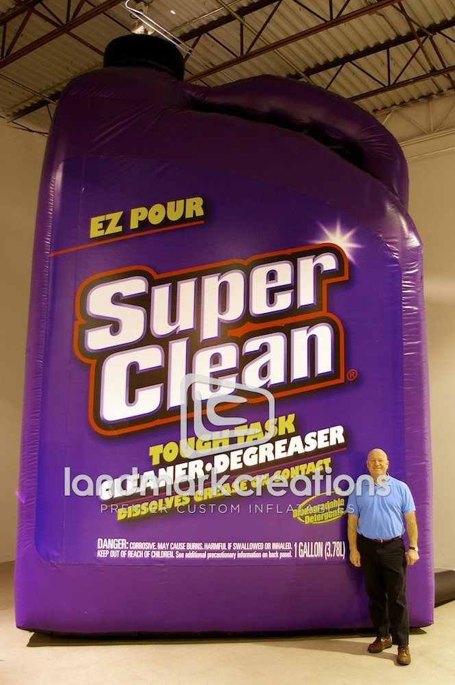 Super Clean, cleaning products retailer, uses their inflatable replica of Tough Task Cleaner to attract attention at automotive events.