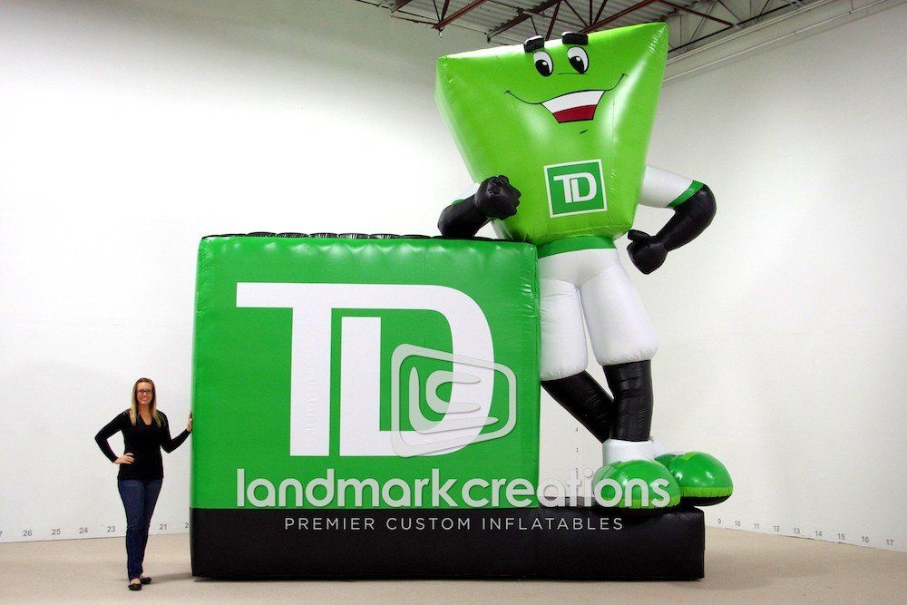 TD Bank Group, a financial products and services bank Headquartered in Toronto, inflates their 15-foot-tall mascot, TD Man, during grand opening celebration at new brand locations in Canada.