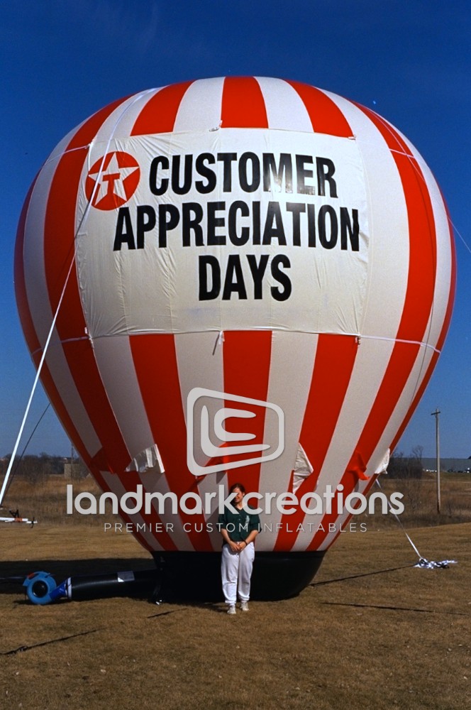 Gas stations and oil retail brands, like Texaco Inc., announce special events in style with custom inflatable hot air shapes. Interchangeable banners are available for inflatable balloons, making it easy to advertise throughout the year!