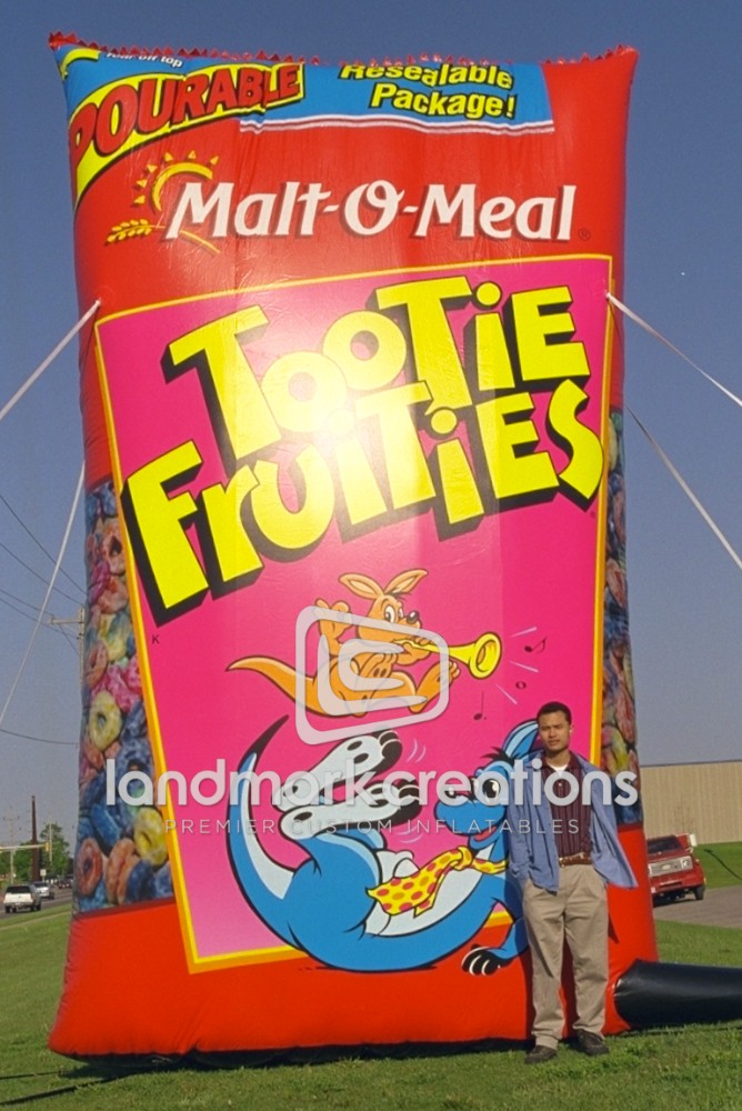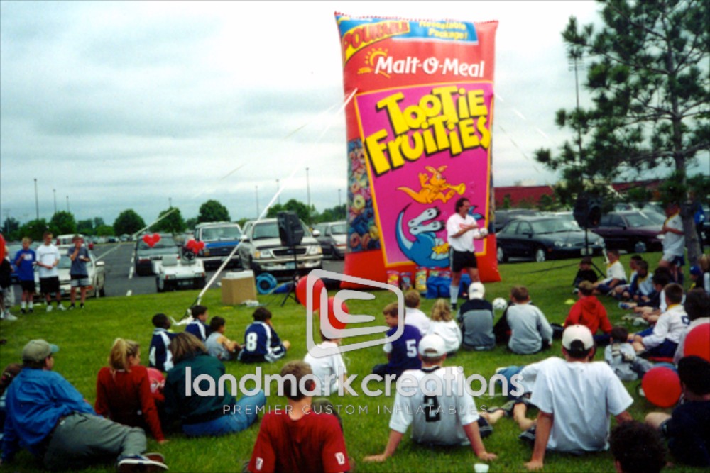 This giant inflatable Tootlie Fruities cereal bag was a centerpiece at the Malt-O-Meal Youth 2000 soccer tournaments. The giant cereal bag replica connected with young athletes and helped attract crowds during the event.