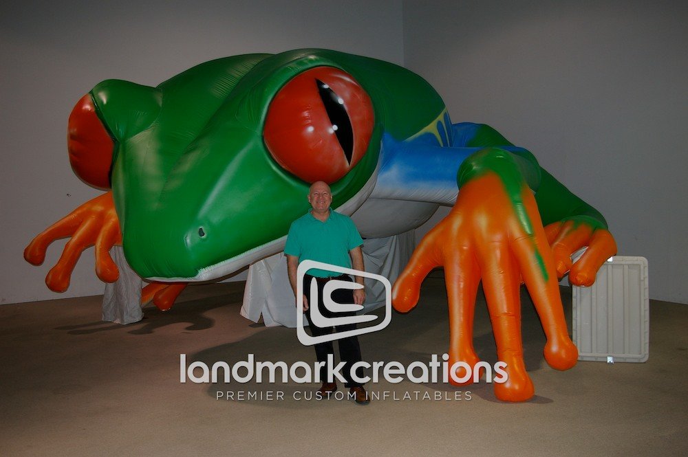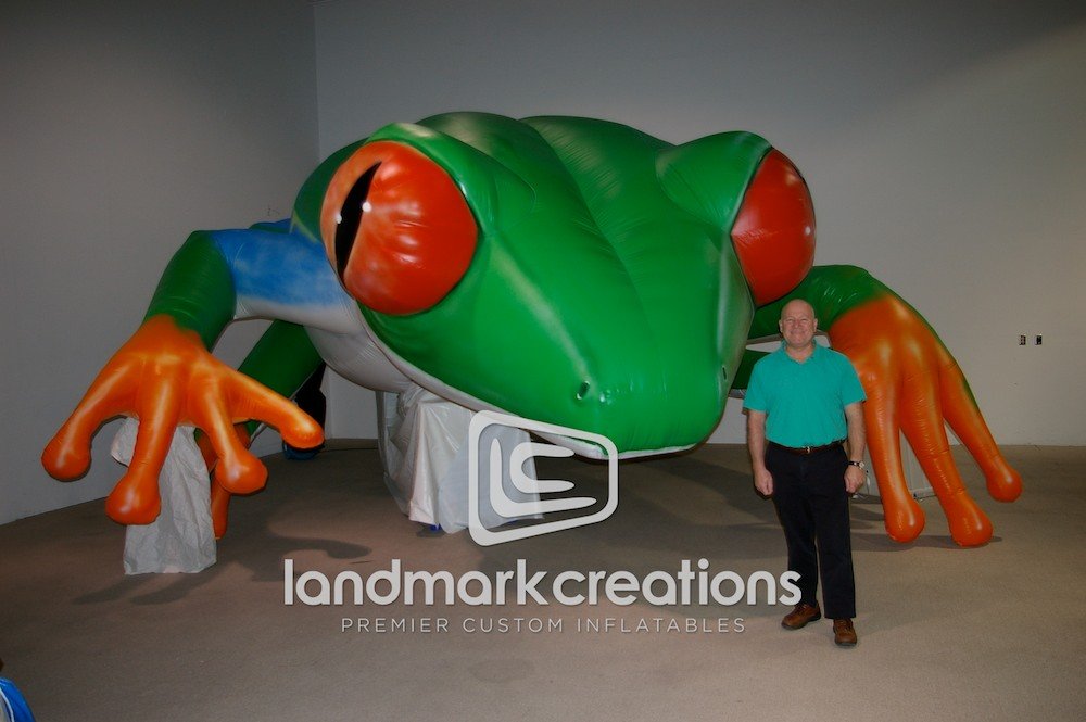 Need a bright and colorful way to draw attention to a debuting exhibit for your attraction? The Sacramento Zoo placed this giant tree frog replica peering over a building rooftop to create the awe factor and attract visitors to their new amphibian exhibit.
