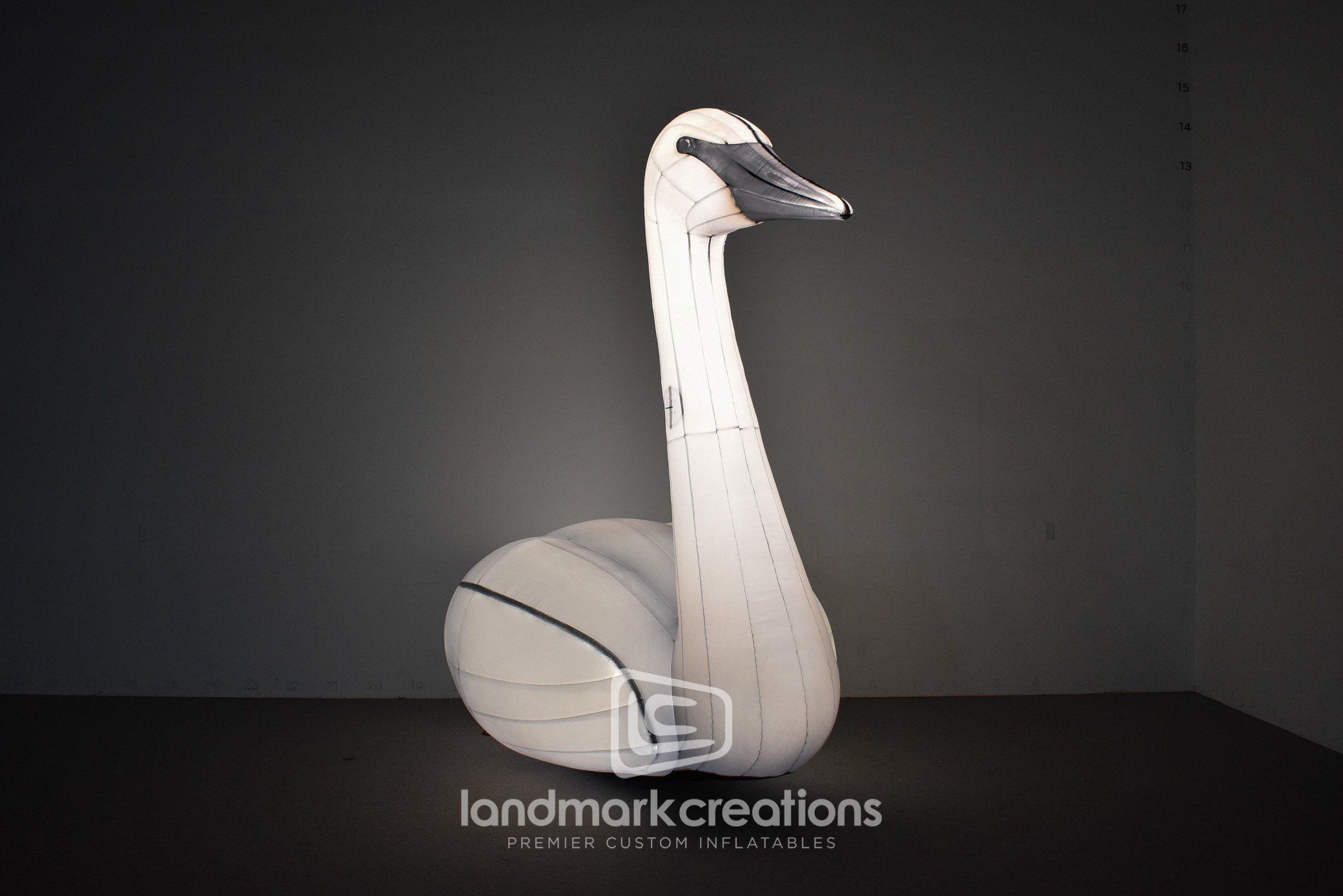 The Minnesota Zoo included this giant trumpeter swan display in the roster for its inaugural "Nature Illuminated" outdoor exhibit. The exhibit's objective was to connet visitors with the zoo during the pandemic while educating them about endangered animals. The graceful swan display, especially when lit after dark, made a beautiful addition to the grasslands biome of the event.