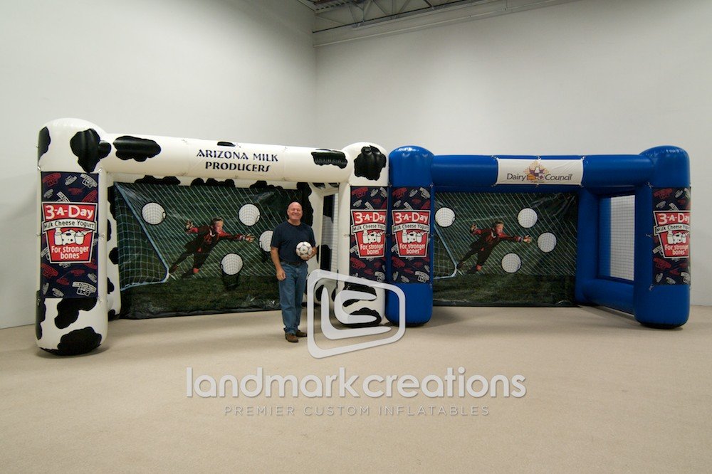 Make your custom inflatables work double duty! Arizona Milk Producers used custom inflatable soccer goals to promote good health and nutrition at both soccer and football games by using interchangeable backdrops.