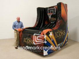 Utah Jazz fans get a chance to show off their skills with this custom inflatable dual basketball shoot! Full digital printing brings this inflatable to life and attracts serious attention at basketball games and public events.