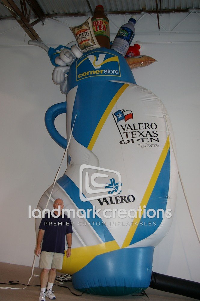 This inflatable golf bag replica was displayed at the Valero Texas Open, a PGA TOUR competition, hosted by the Valero Energy Foundation. The inflatable golf bag, complete with Valero's logo, offered a fun photo opportunity for participants and golf fans!