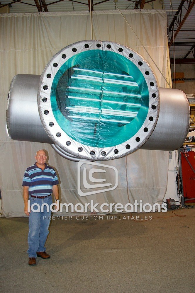 Aquionics, a UV water treatment company, had one of their UV systems designed into a giant inflatable product replica for launch events and promotional events. Suspended from above the inflatable product replica caused a few double-takes!
