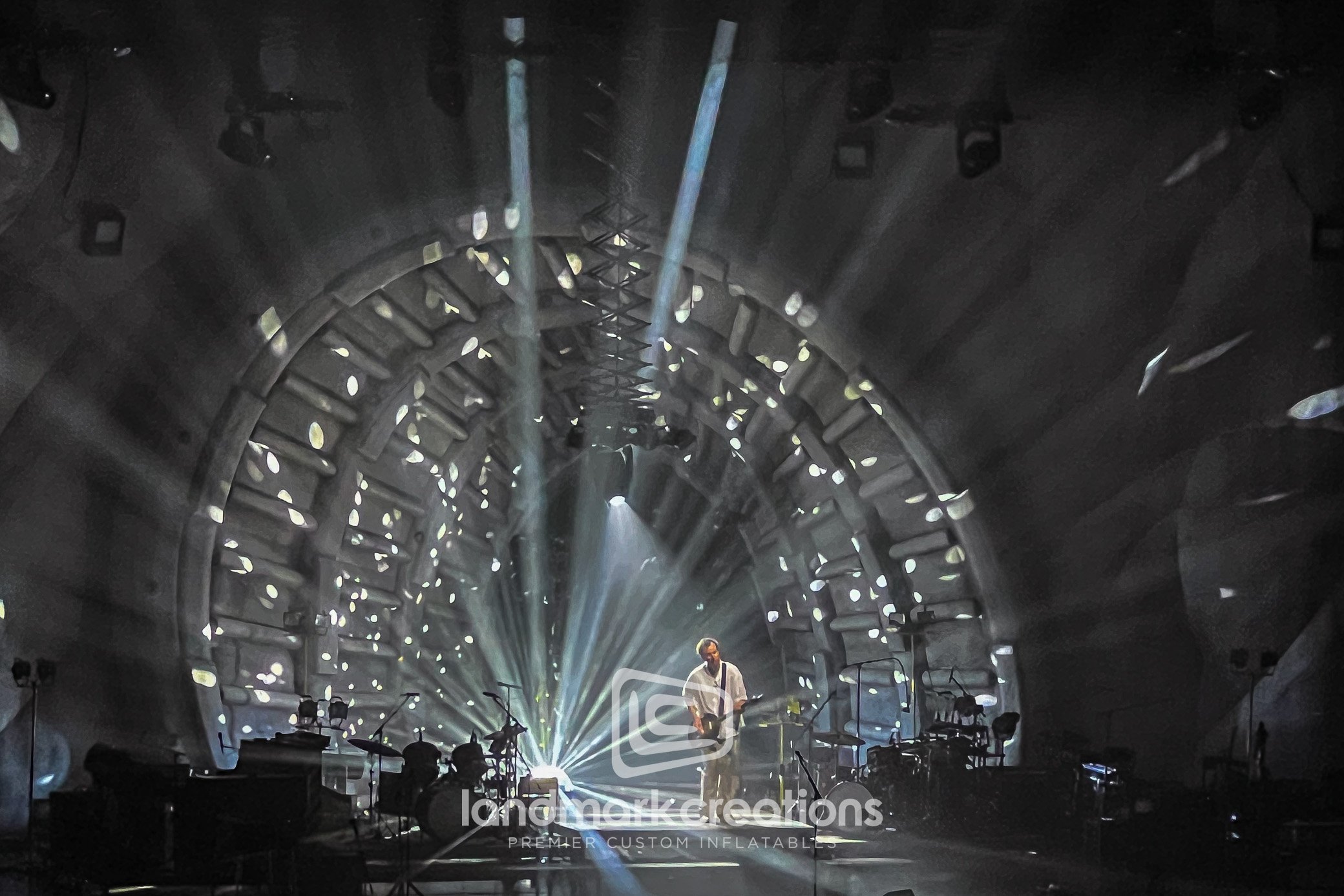 Designed for Vampire Weekend's tour, this custom inflatable rock wall with a detachable tunnel creates an immersive stage backdrop. Ideal for stage producers and tour managers, it inflates quickly and provides attachment points for props and lighting, adding visual impact to any performance.
