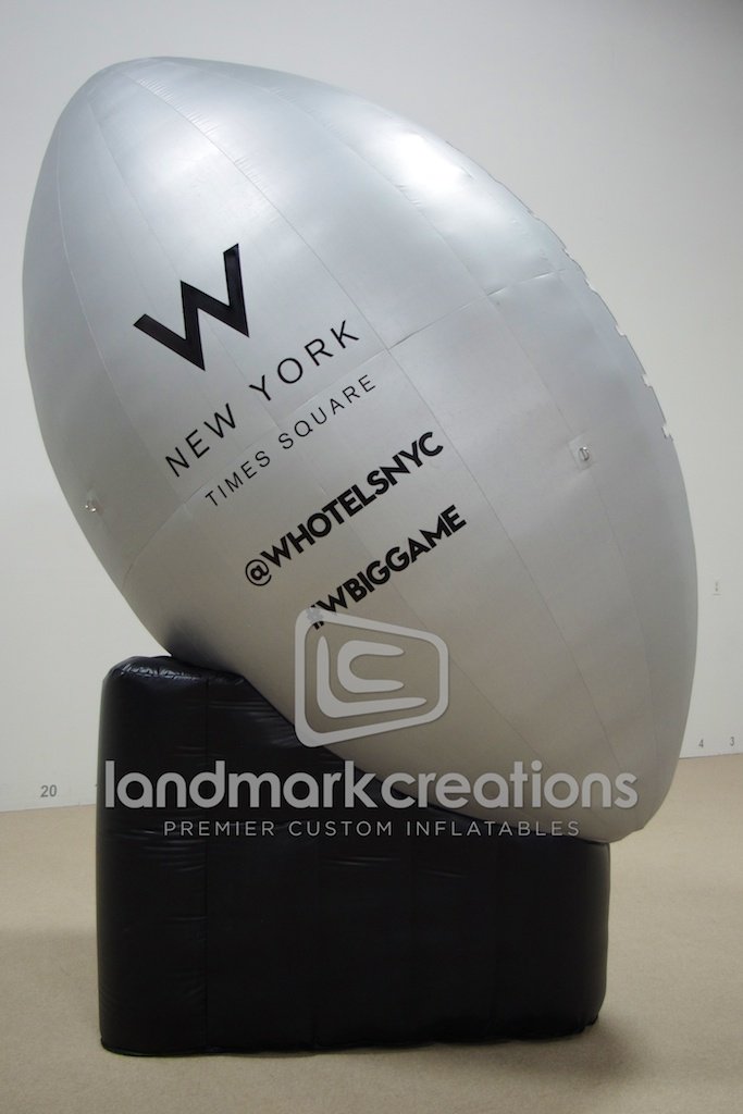 The W Hotel in Times Square inflated this silver football for Super Bowl XLVIII. The giant football replica attract attention and was a fun photo opportunity for guests staying at the hotel!