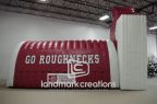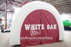 Add volume to a traditional inflatable tunnel by including a custom-designed front panel. This inflatable, for the White Oak Roughnecks, stands 20 feet tall and attract tons of attention.