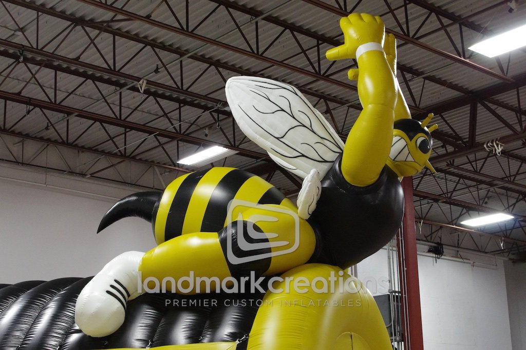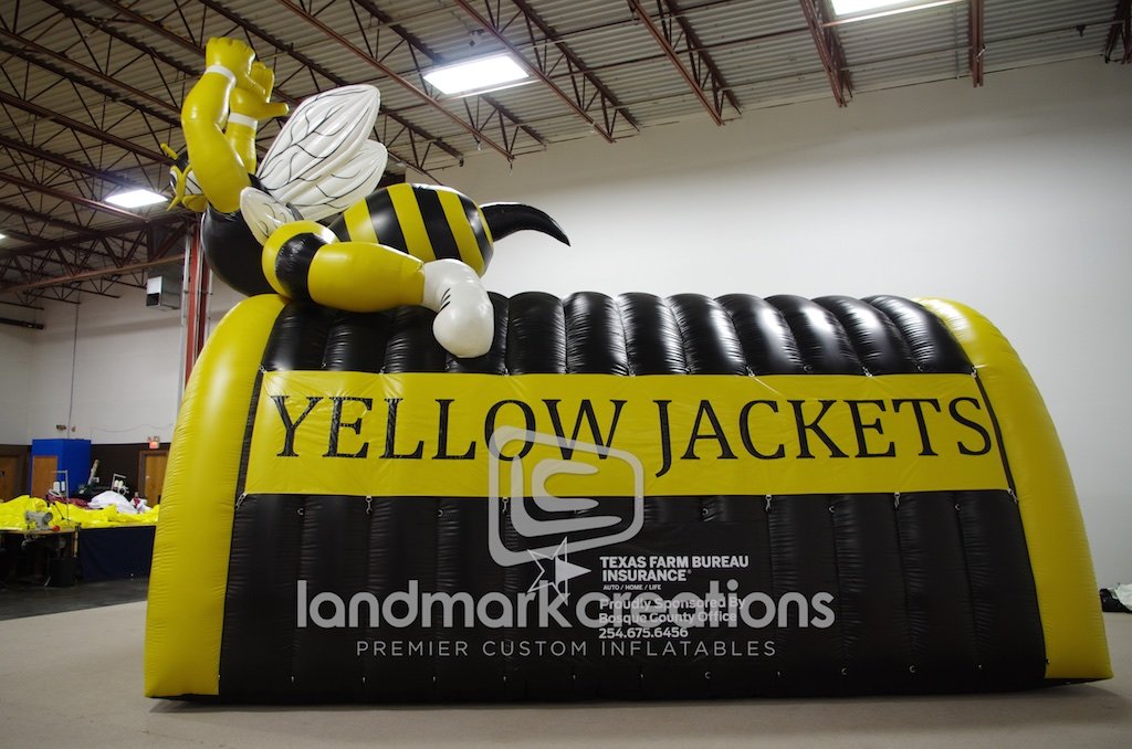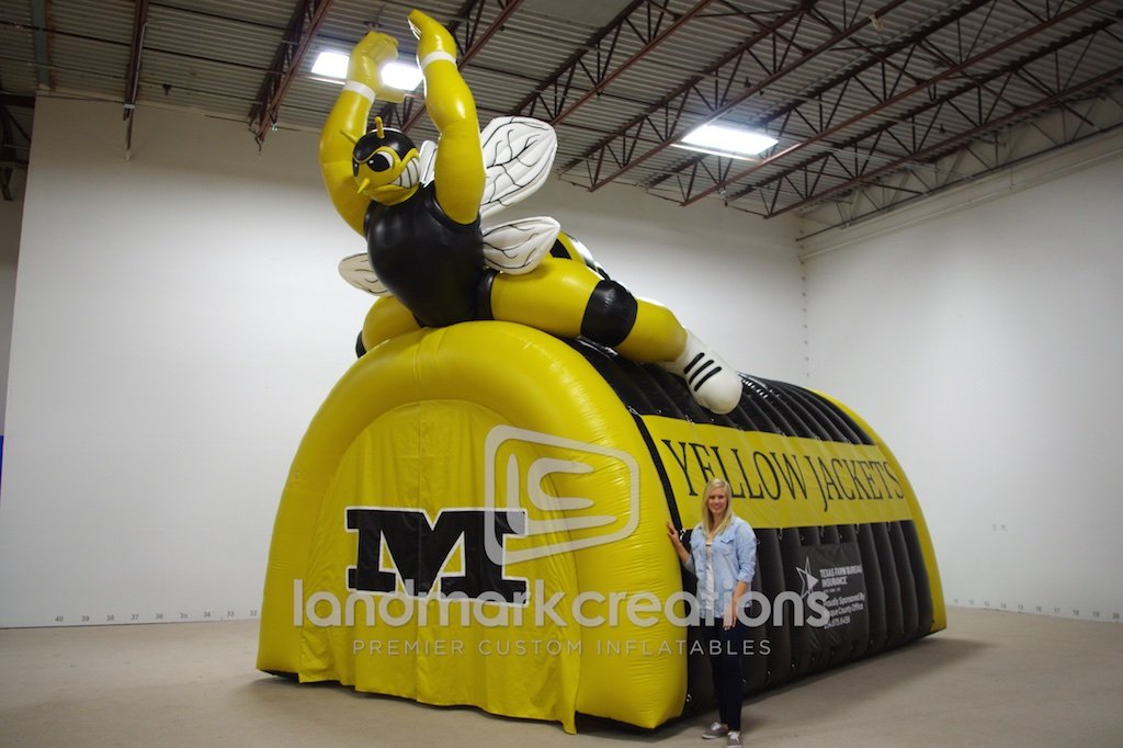 Meridian High School wanted to display their mascot and this inflatable sports tunnel does just that! The yellow jacket football tunnel takes center stage on the field and pumps up fans every time.