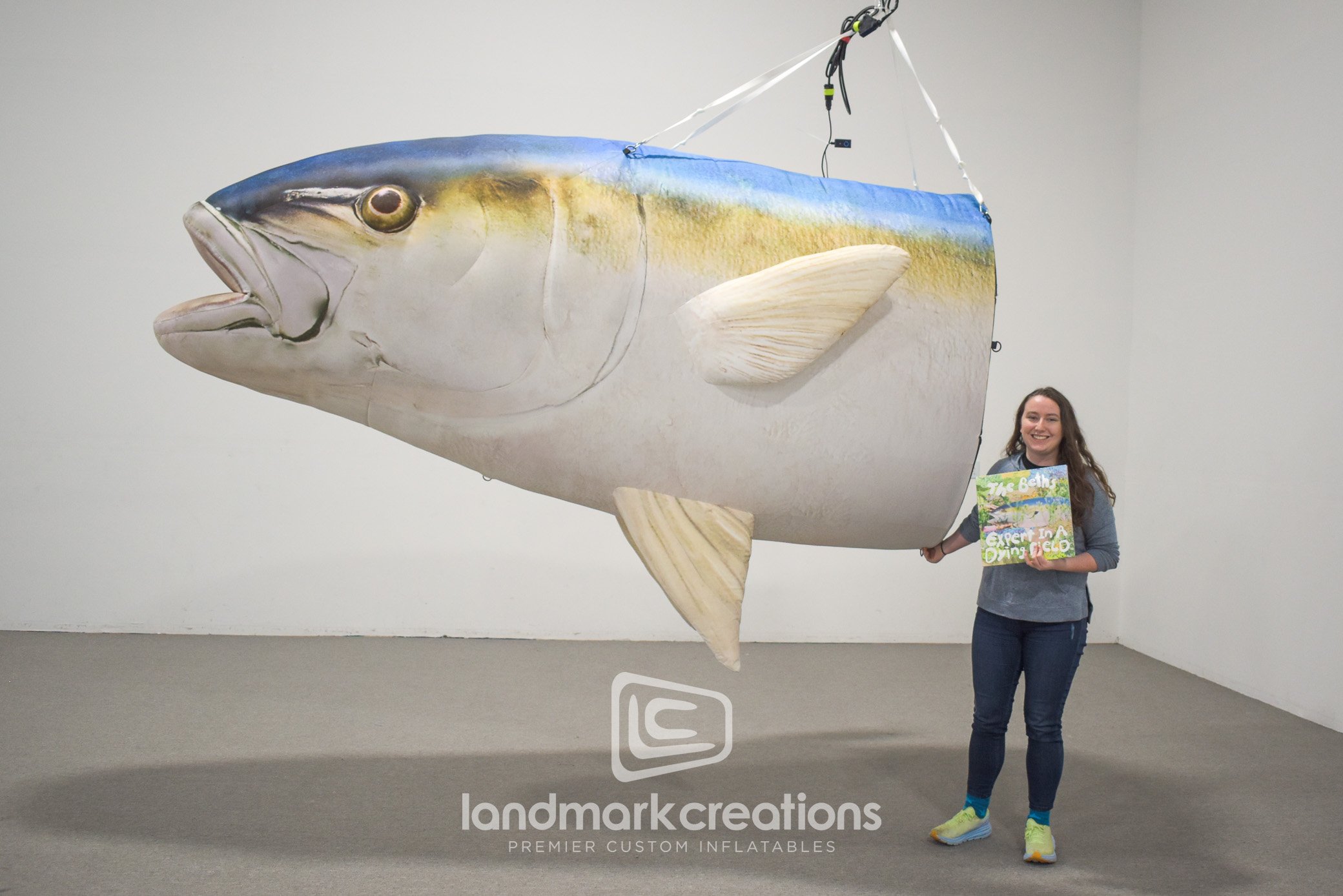 There's nothing fishy about the giant custom inflatable yellowfin tuna Landmark created as stage prop for New Zealand inde rock band The Beths. The giant inflatable fish display is a replica of the one featured on the cover of their album "Expert in a Dying Field". Custom inflatables make great set pieces for touring groups because they're easy to set up and pack small for transport between shows.