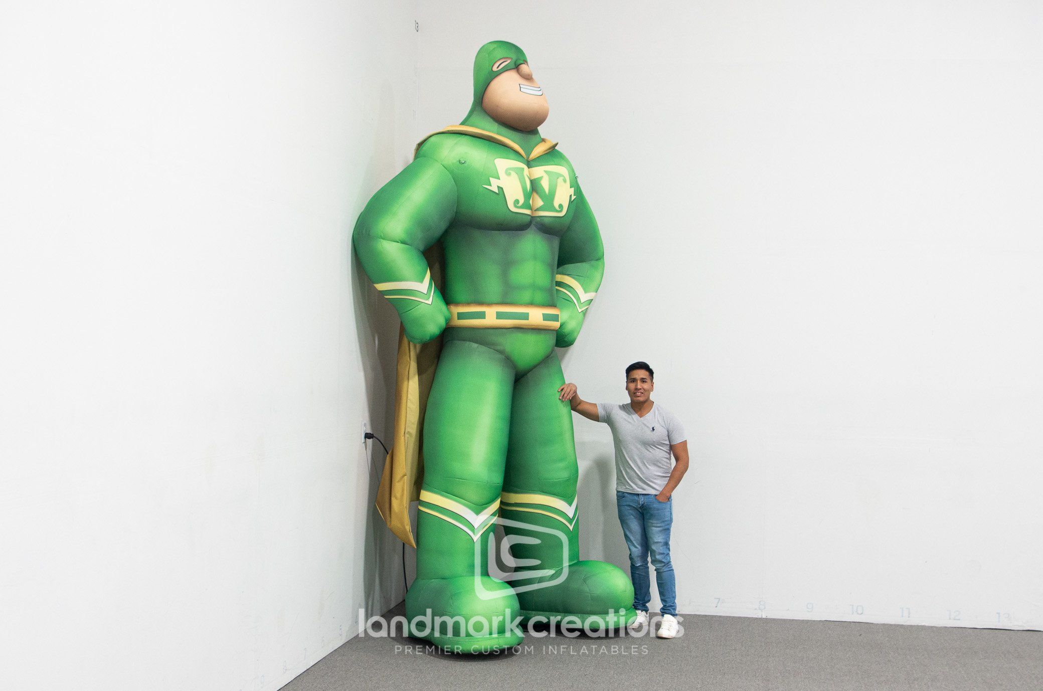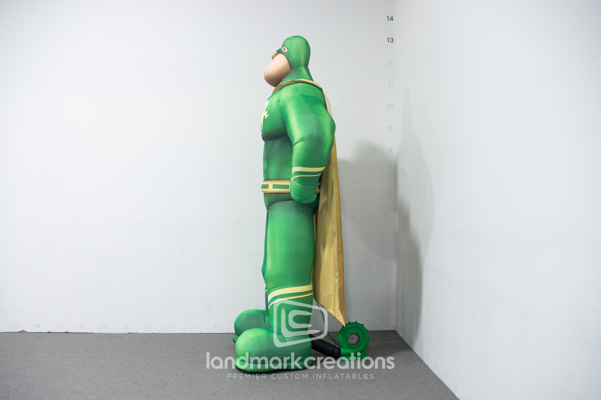 Professional lawn care expert Weed Man gets noticed by local crowds at parades and community events using a custom inflatable version of their Weed Man super hero mascot.