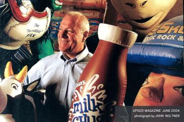 Cooper's company logo and slogan appear prominently on the inflatable, so everyone who sees it instantly gets the message: "Van Atkins Jewelers. You know she's worth it!"