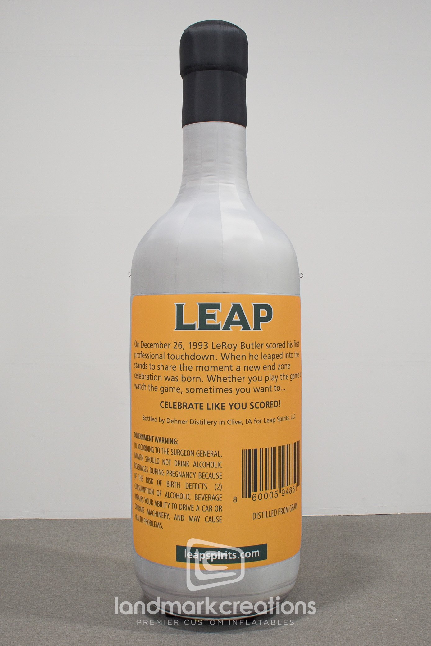 Leap Spirits creates brand recognition at special events and store samplings with their giant inflatable Leap Vodka bottle replica. Giant inflatable replicas are easy to transport between events and make great photo opps, so crowds can extend your brand reach on social media beyond the event.