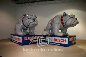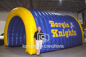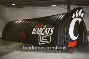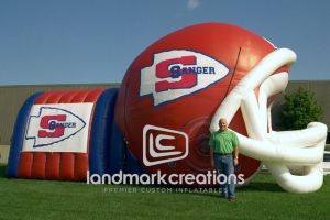 This is what most people think of when inflatables come to mind. Available in custom sizes and designs, cold-air inflatables can be mounted on the ground, on rooftops, indoors or at any fixed location. They inflate with the aid of a blower system in just minutes bringing your product replica, mascot, logo or sports tunnel to life.
