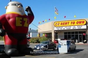 This is what most people think of when inflatables come to mind. Available in custom sizes and designs, cold-air inflatables can be mounted on the ground, on rooftops, indoors or at any fixed location. They inflate with the aid of a blower system in just minutes bringing your product replica, mascot, logo or sports tunnel to life.