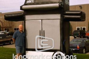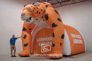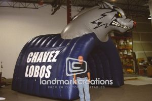 This is what most people think of when inflatables come to mind. Available in custom sizes and designs, cold-air inflatables can be mounted on the ground, on rooftops, indoors or at any fixed location. They inflate with the aid of a blower system in just minutes bringing your product replica, mascot, logo or sports tunnel to life.