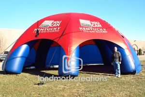 This is what most people think of when inflatables come to mind. Available in custom sizes and designs, cold-air inflatables can be mounted on the ground, on rooftops, indoors or at any fixed location. They inflate with the aid of a blower system in just minutes bringing your product replica, mascot, logo or sports tunnel to life.