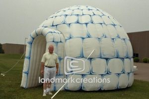 This is what most people think of when inflatables come to mind. Available in custom sizes and designs, cold-air inflatables can be mounted on the ground, on rooftops, indoors or at any fixed location. They inflate with the aid of a blower system in just minutes bringing your product replica, mascot, logo or sports tunnel to life.
