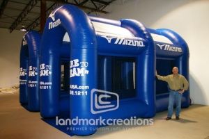 This is what most people think of when inflatables come to mind. Available in custom sizes and designs, cold-air inflatables can be mounted on the ground, on rooftops, indoors or at any fixed location. They inflate with the aid of a blower system in just minutes bringing your product replica, mascot, logo or sports tunnel to life.