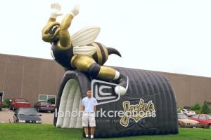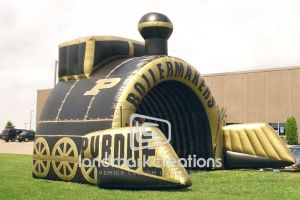This is what most people think of when inflatables come to mind. Available in custom sizes and designs, cold-air inflatables can be mounted on the ground, on rooftops, indoors or at any fixed location. They inflate with the aid of a blower system in just minutes bringing your product replica, mascot, logo or sports tunnel to life.