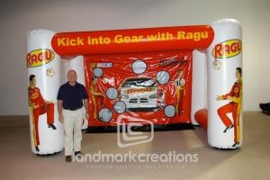 This is what most people think of when inflatables come to mind. Available in custom sizes and designs, cold-air inflatables can be mounted on the ground, on rooftops, indoors or at any fixed location. They inflate with the aid of a blower system in just minutes bringing your product replica, mascot, logo or sports tunnel to life.