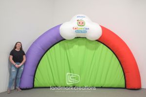 This is what most people think of when inflatables come to mind. Available in custom sizes and designs, cold-air inflatables can be mounted on the ground, on rooftops, indoors or at any fixed location. They inflate with the aid of a blower system in just minutes bringing your product replica, mascot, logo or sports tunnel to life.