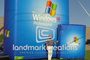 When your products and services represent a virtual world, it's nice to add a third dimension to the mix. Inflatables bring computer-related and other technology-type products and services to reality in bigger-than-life size. What an impression a 30-foot tall robotic dog or PalmPilot makes. From inflatable, logo-bearing hot air balloons that fly over crowds dropping coupons to massive inflatable software boxes, you'll find your virtual world can make a big splash in the real world with a little help from Landmark Creations.