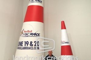 When you require something that gets the attention of people in action, custom inflatable pylons answer the call. Similar to the air gates used during the 2009 Red Bull Air Games, inflatable buoys highlight goals at sporting events, protect the public at beaches, mark water hazards on golf courses, and more. Lightweight and portable, inflatable markers from Landmark Creations give you the ultimate in flexibility.