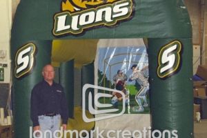 Whether you are looking for the classic A-style inflatable football toss or want to turn your product into a mobile throw station inflatable sports tosses help you score points with sports fans! Inflatable football tosses and throw stations are great for entertaining fans at pre and post-game events, attracting attention at tailgating parties and adding excitement to end zone competitions.
