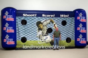 Because they are lightweight, you wouldn't think portable soccer goals would be strong, but they are! Go ahead, kick it as hard as you can and it will keep on standing. The shape, size and backdrop of portable soccer goals is perfect for branding and/or advertising messages. Because the line will always lead to your booth, you'll have a captive audience to promote to.