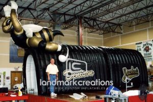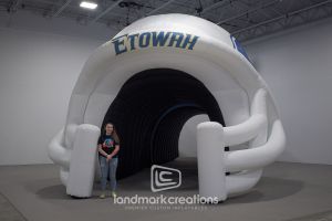 Landmark Creations can build custom inflatable tunnels specifically for you using your mascot, school colors, or theme.