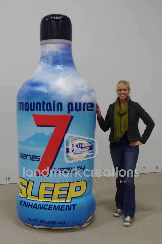 Mountain Pure Beverage displays this inflatable product replica to promote their Series 7 Health sleep enhancement beverages. With a hidden blower system the sleek looking inflatable attracts attention and sparks conversation at marketing events.