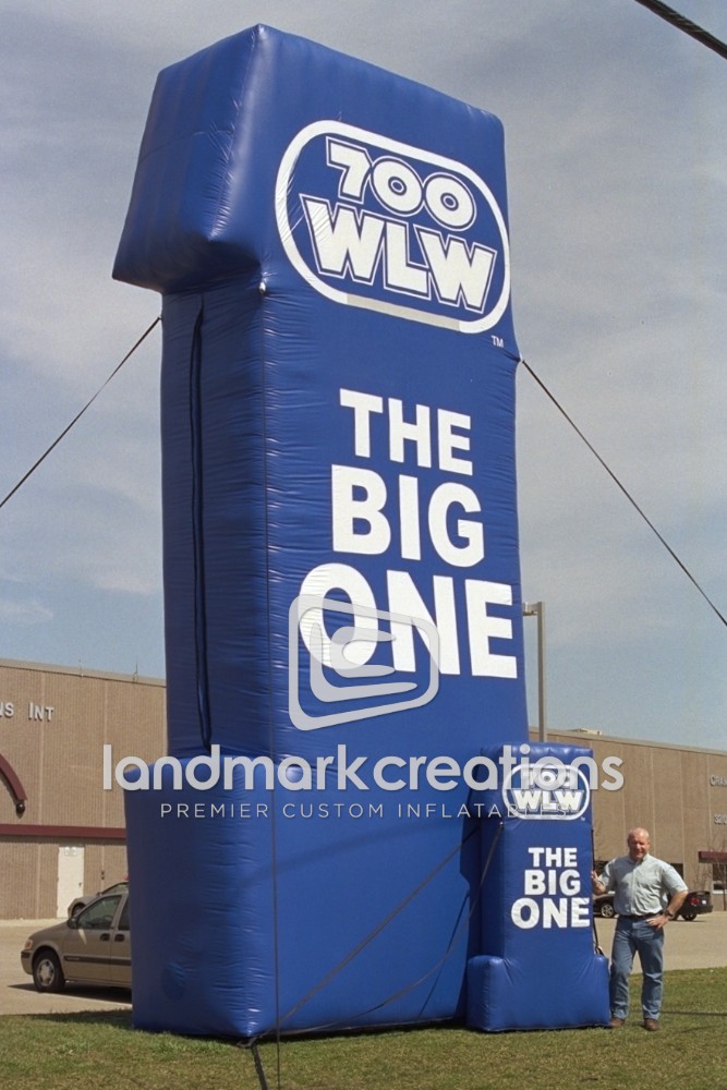 Clear Channel Radio promotes their 700 WLW radio station with a giant inflatable number 1 logo. Seen from far and wide, this giant inflatable display is a perfect way to attract attention at a variety of marketing events.